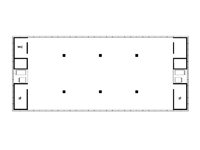 die Positionierung der Fluchtstiegen und Lifte an den Schmalseiten des Hauses