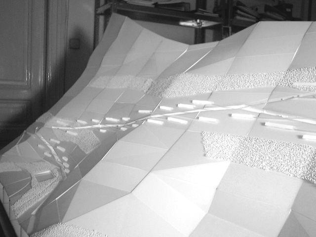 Der Steile hang dient als "Tragstruktur" für die Einzelnen Wohneinheiten